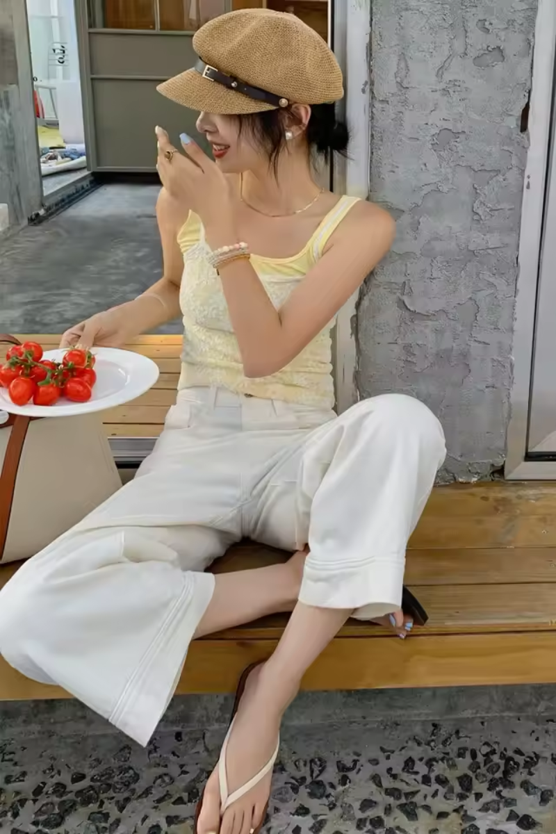 Sa coupe d'inspiration vintage s'associe facilement à tout, des hauts structurés aux chemisiers fluides, pour un style toujours impeccable. Léger, respirant et parfaitement ajusté, ce jean est conçu pour bouger avec assurance et aisance : parfait pour les balades ensoleillées en ville, les brunchs et bien plus encore.