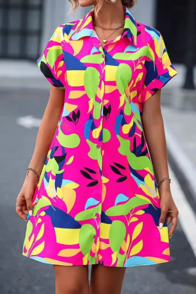 Confectionnée en matériaux doux, naturels et délicats, cette robe chemise fleurie est la pièce parfaite pour illuminer vos journées d'été. Sa coupe A-line et ses manches courtes offrent une silhouette fluide et légère, tandis que le col à revers ajoute une touche classique et chic. Idéale pour rester élégante même lors des journées les plus chaudes.